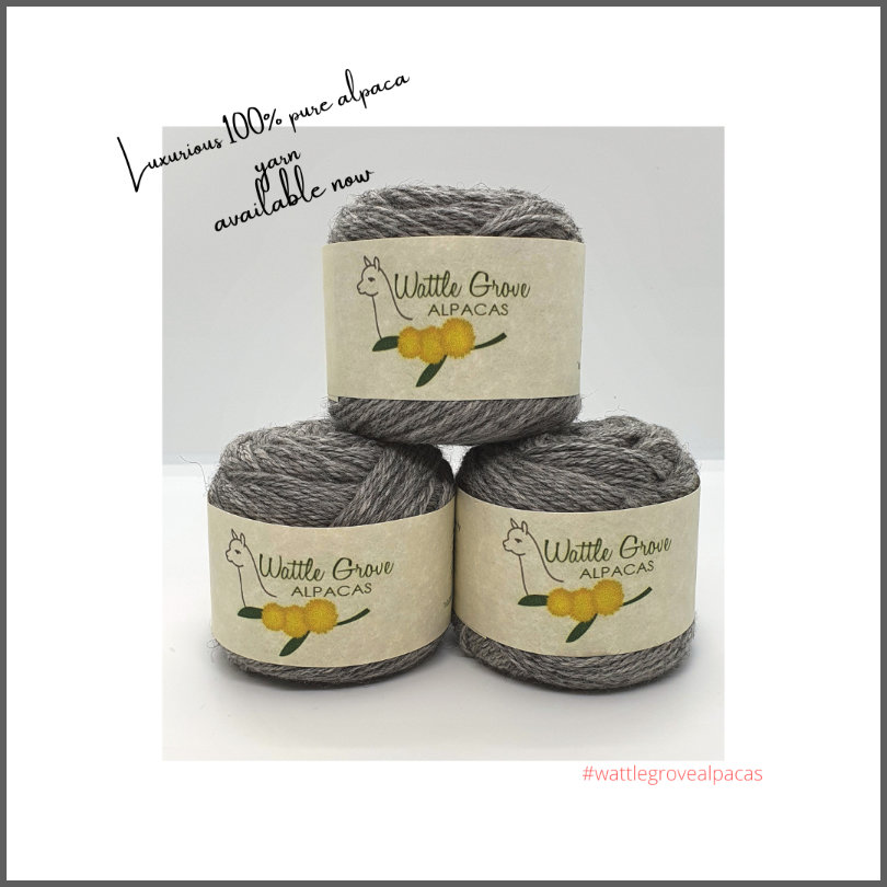 These 100% pure, natural coloured alpaca yarns were grown and harvested right here on our very own farm. Each yarn below is shown with the very alpaca who grew it for us.