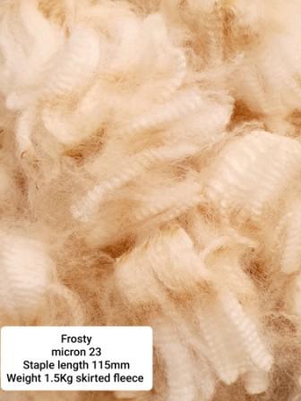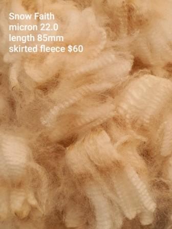 FLEECE MICRON, STAPLE LENGTH AND PRICES ON THE PHOTOS. THERE ARE 3 WHITE AND ONE LIGHT FAWN FLEECE FOR SALE