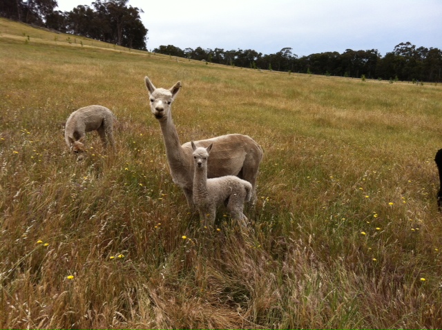 Ali is ready to be mated. She is being offered for sale as I have her cria. Ali would suit someone looking to start in the alpaca breeding business, but not at the top end of the market. She is the adult in the photo.
